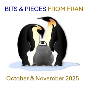Posted on: October 2, 2025[ARCHIVED] Bits & Pieces from Fran - October & November 2025