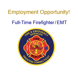 The Town of Preston Fire Department is seeking qualified candidates for the position of full-time firefighter/EMT. Candidates must email their employment application and resume to PrestonHR@Preston-ct.org. More information...
