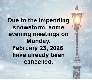 The Preston Town Hall is always closed on Mondays, with the exception of some evening meetings. Due to the impending snowstorm forecasted for this area on Sunday into Monday, some evening meetings scheduled for Monday, February 23, 2026, have already been cancelled: WPCA at 6:30pm and CAC at 7:00pm. Please check back for further updates, and stay safe.